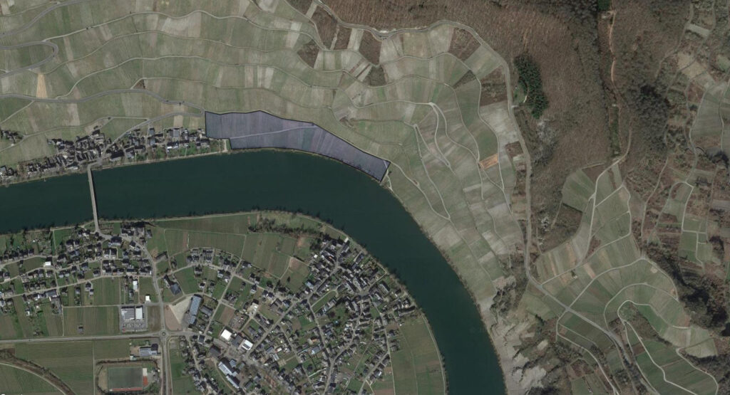 In der Kranklei hedder parcellen i dag, i 1868 skrev Clotten “Kranklay”. Du kan læse historien om Treppchen og Kranklay via link i bunden af dette blog indlæg. Parcellen ligger vest for byen Ürzig, overfor byen Erden. Her skyder en lille bjergknold op, og markerer skiftet fra den røde skifer ved Ürzig til den grå skifer nedstrøms. På Kranklei står vinstokkene i rød skifer. En jordbundstype, som overleverer en helt særligt krydret karakter til Riesling.
